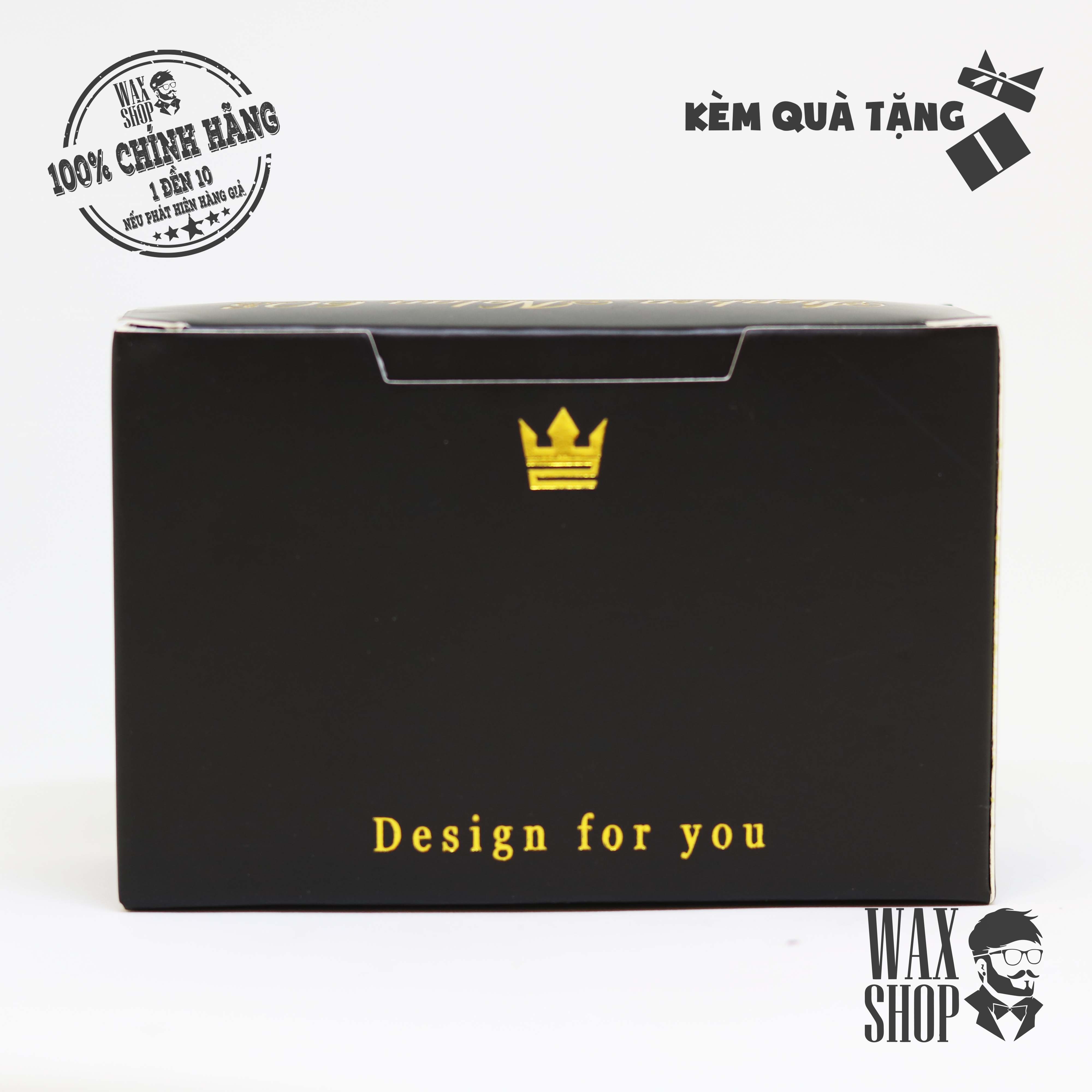 Có hộp giấy bên ngoài đơn giản được khắc hình vương miện màu vàng.